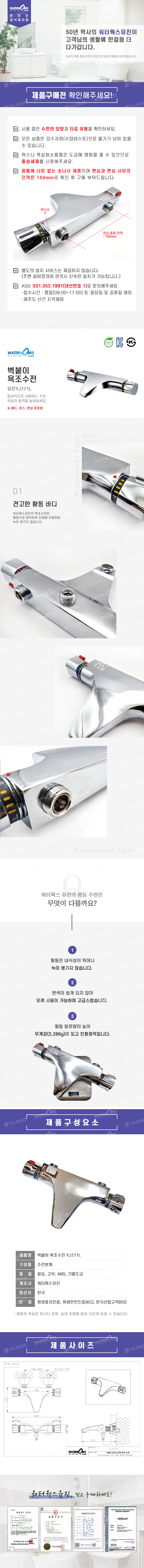 벽붙이 욕조수전 YJ771L(헤드,호스,편심 미포함)